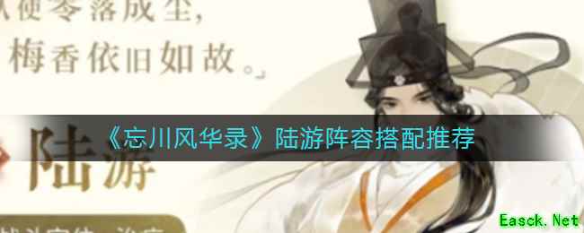 《忘川风华录》游戏中陆游是一个高速奶妈角色,推荐阵容搭配陆游+杜甫+杨玉环+赢政+韩非,今天小编就给大家介绍一下忘川风华录陆游阵容搭配推荐,有需要的小伙伴不要错过了。
