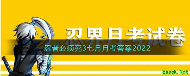 担任本次深渊赛季召唤兽的河豚·墩水,毕生的目标是?这是《忍者必须死3》2022年7月月考题目之一,忍界月考试卷,是为忍忍们专门准备的独特考场。忍忍们只需要答对试卷内的几道简单的题目,便可以拿到奖励!下面小编就给大家分享一下正确答案,一起看看吧! >>>>小编推荐:《忍者必须死3》兑换码大全2022
