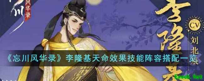 忘川风华录李隆基天命效果技能阵容怎么搭配?忘川风华录李隆基,千古一帝,唐朝盛世的明君,受到很多玩家关注,忘川风华录李隆基怎么样?下面小编给大家带来忘川风华录李隆基天命效果技能阵容搭配一览。