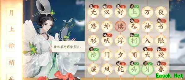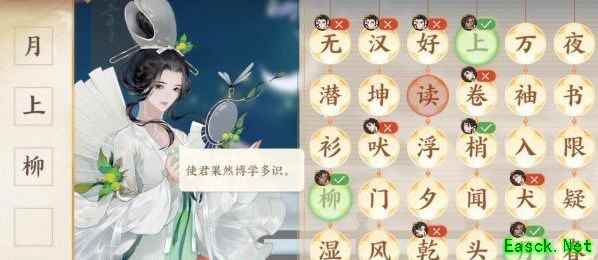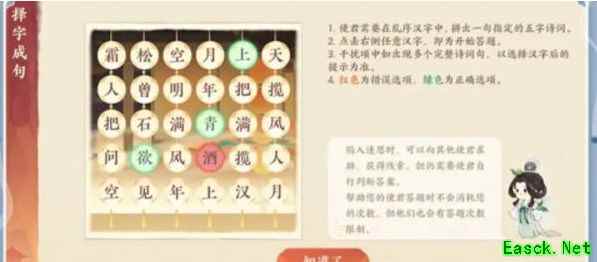 攻略: 1、首先我们进入忘川风华录游戏择字成句关卡以后,先随意点击右侧的文字,红色为错误,绿色为正确。