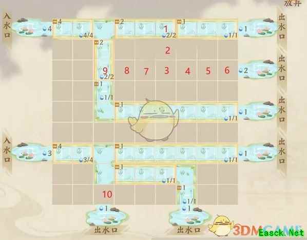 《忘川风华录》水沃西川识水疏流1-4攻略1、在1、3、9的位置分别放置3口弯道。 2、在4、5、6的位置分别放置水量承载为2的直道。