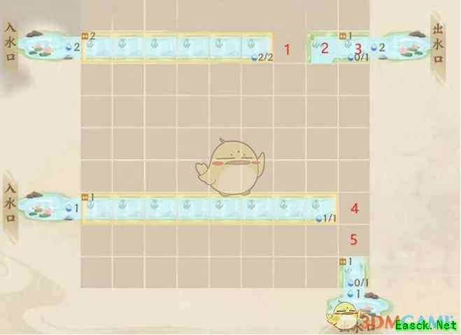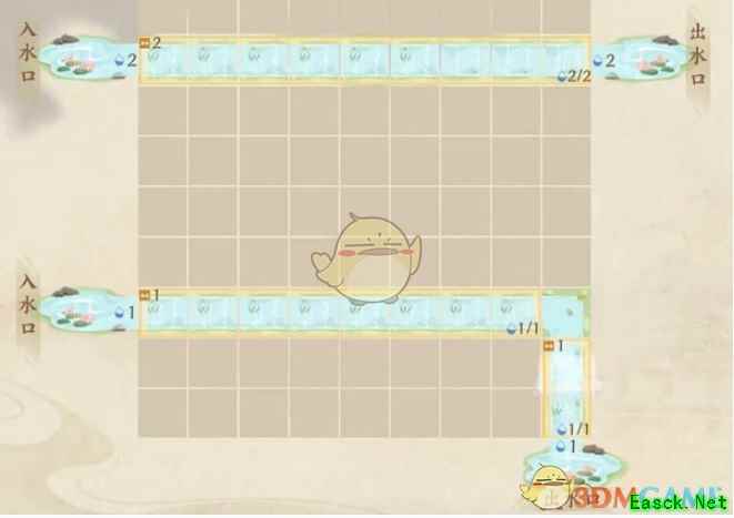 《忘川风华录》水沃西川识水疏流1-1攻略1、在图中1、2、3的位置分别放置水量承载为2的直道。 2、在4的位置放置2口弯道。