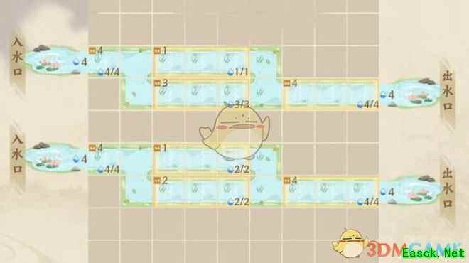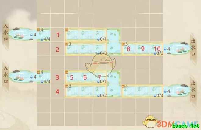 《忘川风华录》水沃西川识水疏流1-2攻略1、在1、3的位置分别放置3口弯道。 2、在2、4的位置分别放置2口弯道。