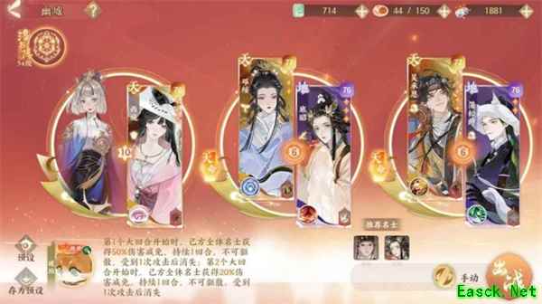 三、实战要点 1、开局:若第一回合有人阵亡,直接重开。 2、流血循环:首回合狐狸与小猴各挂一次流血。小猴阵亡后再召唤,形成额外挂血机会。 3、邓绥释放时机: 前两回合先分配【三圭瓒】,第三回合再开大。 三圭瓒优先顺序:首领 > 输出 > 辅助。 不要给夫差挂。 4、过关条件:只要全员能撑过两回合,通关机会就很大。 以上就是小编整理带来的忘川风华录幽墟4层怎么过,幽墟4层通关攻略,更多相关游戏攻略,请关注手游网! 本文内容来源于互联网,如有侵权请联系删除。 |