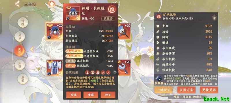 屈原养成,因为名士机制的原因(变身兰草不触发装备和九世灵效果),所以养成方法比较简单,只要敏捷够高散件也可以,九世灵随意。这里我选择的是长振+苍灰梦魂,搭配仅供参考。