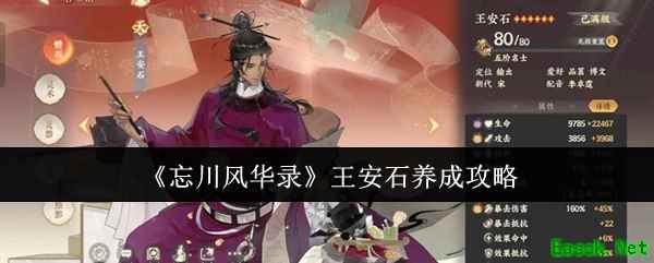 忘川风华录王安石怎么养成?忘川风华录每一位名士的主要属性都不相同,玩家根据关卡的特点,以及名士主要属性的匹配度,进行出战阵容、名士灵气相关的搭配。那么游戏中王安石应该怎么培养呢?小编为你准备了一份攻略,一起来看看吧。
