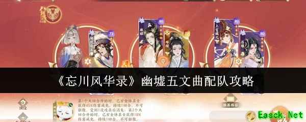 忘川风华录幽墟五文曲怎么配队?忘川风华录游戏发生在一个架空世界-忘川,玩家可以扮演的忘川使者,将驻守着忘川这方世外桃源。那么游戏中幽墟5文曲应该怎么配队通过呢?小编为你准备了一份攻略,一起来看看吧。