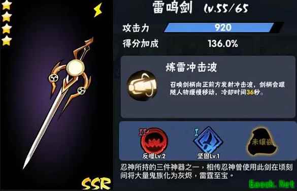 《忍者必须死3》雷鸣剑属性强度一览雷鸣剑(雷系武器) 搭配忍者:阿力,流派超威,星闪小椒