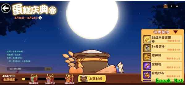 顾名思义靠蛋糕物品来领取福利,这个可就靠各位的欧气啦,小编自己就抽到了结神符和金钥匙呢。 时间8月18至8月28,十天的时间也还说的过去,每5个蛋糕抽一次奖,可以通过打悬赏令BOSS,3v3每日任务和打竞技场BOSS获得蛋糕,每日限制30块。 而蛋糕在周年绘卷的蛋糕庆典活动里哦,许愿池里的奖品分别有结神符,金钥匙,SS随机图卷和S+悬赏BOSS,总体来说还是比较丰富的,而发送任意弹幕也可以领取祝福奖励,随机性的。