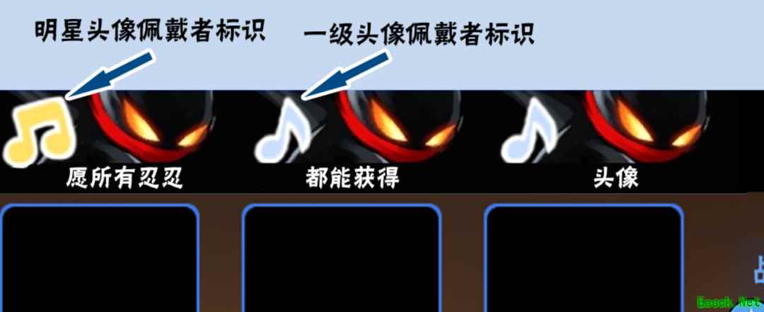 同样,当队伍中出现一名一级头像佩戴者时,对战结束后对手与队友会获得二级头像~ 如拥有二级头像的忍忍遇到明星头像佩戴者并完成对战后,二级头像会自动升级为一级头像!(一二级头像不能同时拥有) 注意:二级头像并没有传播能力,当队伍中只有二级头像佩戴者时,大家并不会获得头像哦! 在无法看到头像的较高段位匹配或排位赛中,忍忍还可以通过以下标识辨别头像佩戴者~