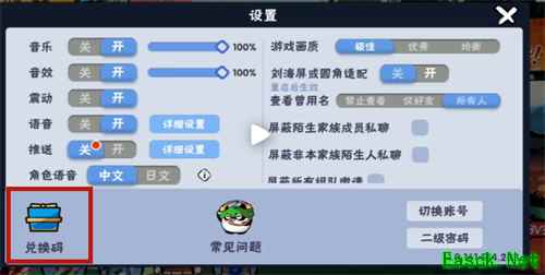 进入到设置页面之后,我们就可以发现左下角的【兑换码】功能选项,把兑换码输入进入就可以领取游戏奖励了。
