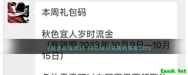 《忍者必须死3》10月10日兑换码领取2023本周礼包码:秋色宜人岁时流金 (有效期2023年10月9日- -10月15日)