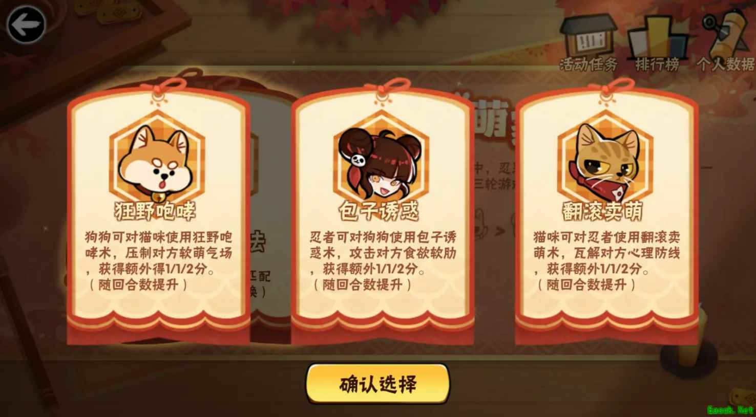 首先,游戏开始前,你需要从三个选项中选择一个战法,分别是“翻滚卖萌”、“狂野咆哮”和“包子诱惑”。这三种战法各具特色,选择得当可以帮助你在后续的对决中占据先机。如果你能选择一个克制敌方战法的萌物,那么根据回合数,你还能获得额外的分数奖励。了解规则之后,选择适合自己的战法就显得至关重要,提前做好准备,才能在实际对局中游刃有余。