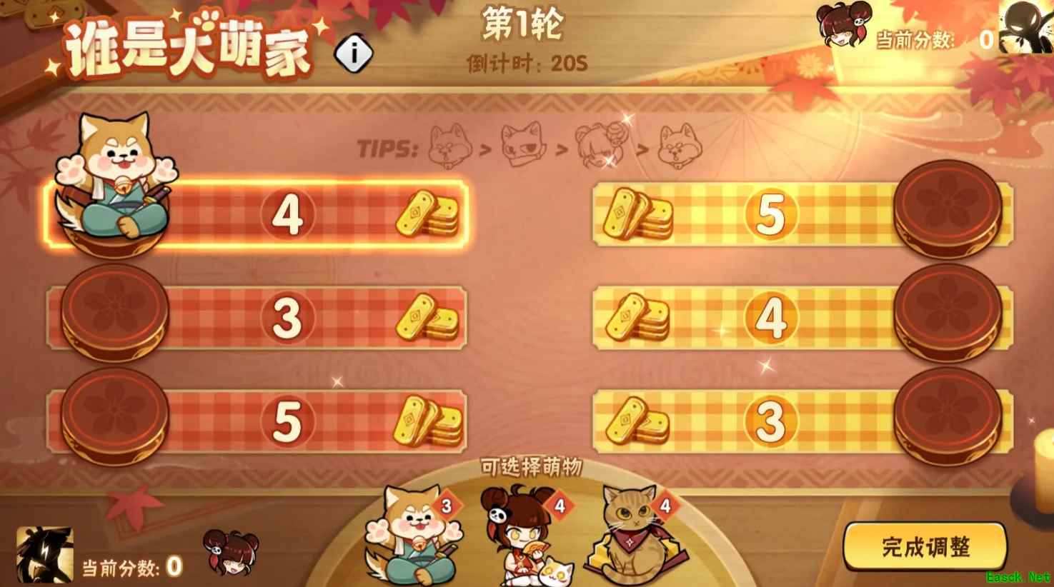 接下来,就是选择萌物了。在成功匹配后,你将获得三种萌物——猫咪、狗狗和忍者,每种萌物都有4只。这三种萌物之间存在着严格的克制关系:狗克猫,猫克忍者,忍者克狗。看似简单的“石剪布”玩法,却在实际操作中充满了变化。你还会获得三条代表不同分数的战线,并且每回合你有一次改变战线的机会,可以通过点击线路调整自己的萌物位置。这一环节考验的是你的策略和眼光,灵活的调配能让你在敌人尚未反应过来时,轻松打破平衡,先发制人。