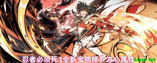 忍者必须死3全新宝物修罗之心属性:一、修罗之心 将能焚尽万物的修罗业火收驻于琉璃珠中,像是曾历火劫之人才有的悲悯。 二、宝物效果(三勾) 攻击力+334;BOSS血量低于50%,忍者对其攻击力+280;BOSS血量低于25%,忍者对其火属性攻击+360。*修罗之心不可与赤晶魂印共同装备,效果详情见游戏内宝物描述。 三、获取方式 可通过参与七周年庆典资料片期间的逆袭悬赏活动,获取SS修罗之心图卷。
