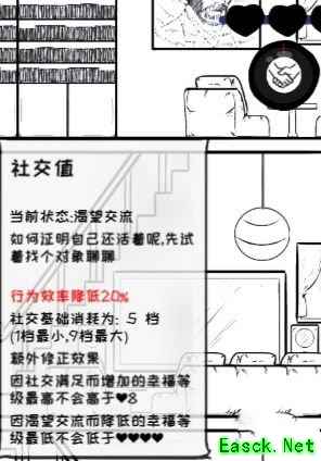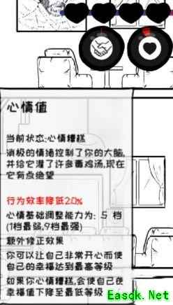 二、左数第二个「心情值」【黑色爱心图标】 最高可降低行为效率20% 恢复方法:吃饭、做有兴趣的事、清洁