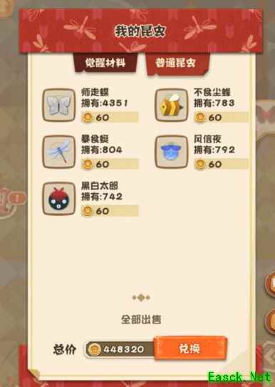2、解锁图鉴 通过捕捉昆虫,还可以解锁昆虫图鉴。 3、捕捉奖励 当捕捉的昆虫达到一定数量时,能够领取额外的捕捉奖励。 4、换取金币 当然,昆虫还有最简单的作用,那就是出售卖金币。但要注意,和觉醒材料搭边的昆虫需要满足一定条件以后才能进行出售,毕竟不能为了金币而亏待自己的崽啊。