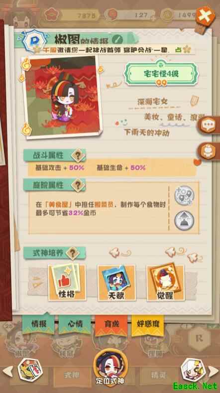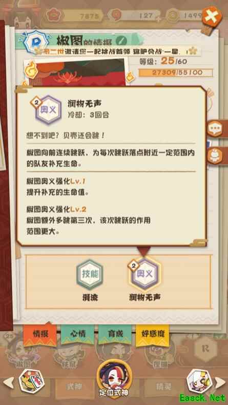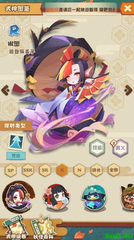三、R级式神入手门槛低易培养 作为最大众的R级式神,椒图可以说是人人尽有,而且召唤出的重复式神还能分解成碎片,提升椒图的天赋等级。每次召唤式神都能找到大量R级式神,所以得到重复的椒图几率很高,重复率高也就意味着获得的式神碎片越多,可以快速提升椒图的天赋。