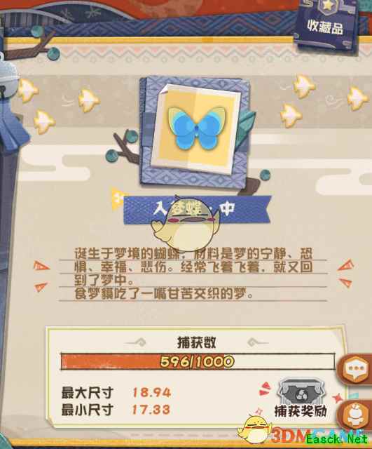 5、昆虫图鉴 可以查看昆虫介绍,和已经捕获的昆虫种类,数量,尺寸。达到一定数量还可以获得奖励。