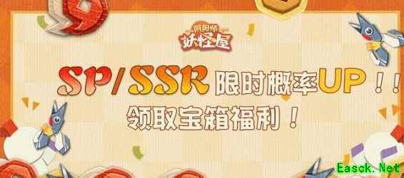 SP/SSR概率UP 活动时间:1月20日维护后-1月26日23:59 活动期间,家主使用剪刀进行召唤时,SP/SSR式神出现概率提升25%!