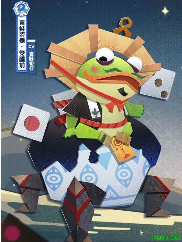 《阴阳师:妖怪屋》全新小妖怪青蛙瓷器介绍一、妖怪介绍 经过萤草老师的特训后 青蛙瓷器被运气好的家主 赢走了不少小红花 胜负欲极强的他 决定重新整装出发前往庭院 要和大家来一场运气的博弈! 二、性格 喜欢争胜负的青蛙瓷器,可以拿出自己所拥有的一切作为筹码。并不拘泥于胜负的形式,甚至会在关键时候出千……虽然嘴上说着浑不在意,还是有着想要守护的东西,这一点倒是和大多式神一样。 (卡米酱补充:嗯?出千?跟我去委员会走一趟) 三、立绘欣赏 1.觉醒前