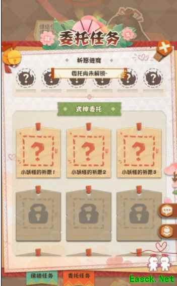 三、委托任务 活动期间会有6位小妖怪在委托任务中请求他们想要的花束,在委托中选择正确的花束送络小妖怪,即可完成委托。委托任务在活动期间内的任意时间都可以完成.但只有完成了当前的委托任务且到特定的时间,后续的委托任务才会解锁。
