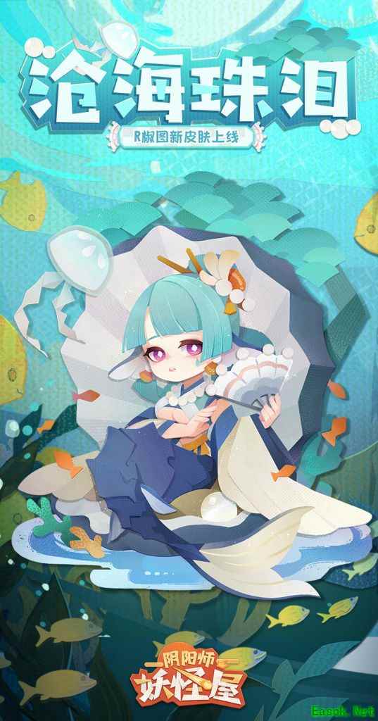 《阴阳师:妖怪屋》沧海珠泪皮肤介绍一、皮肤介绍 在蔚蓝的大海中,鱼群往来,海草飘荡,而静谧的海底深处却隐约传来了少女轻轻的抽泣声... 向往着人类世界的椒图,无法独自离开牢笼般的深海,因此悲郁而落下的眼泪化成了颗颗白净的珍珠。