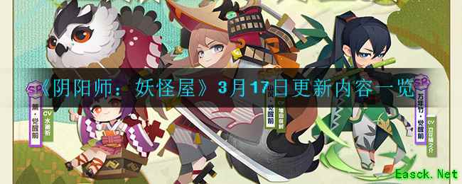 阴阳师妖怪屋在3月17日即将迎来版本更新,很多小伙伴都很想知道具体会更新什么内容,今天小编给大家带来了《阴阳师:妖怪屋》3月17日更新内容一览,感兴趣的小伙伴一起来看看吧。