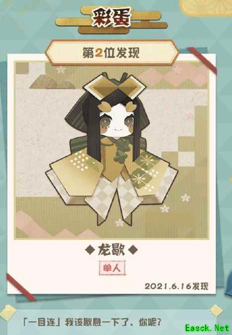 《阴阳师:妖怪屋》一目连彩蛋触发攻略彩蛋1:「龙歇」一目连/单人,一目连心情低较低时可触发,一目连哭哭说话时点龙。 彩蛋2:「风起」一目连/单人/雨天,类似于雨女彩蛋,下雨时可触发。