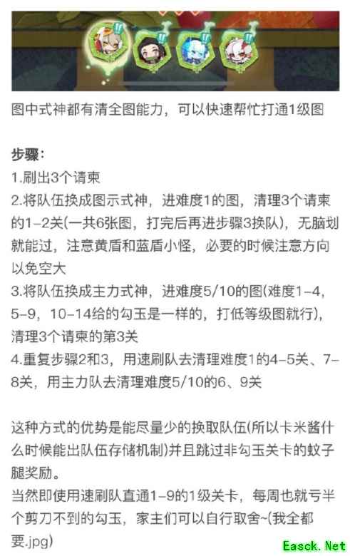 《阴阳师:妖怪屋》请柬刷勾玉攻略刷勾玉需要利用各种全清式神 同时刷出3个请柬后,采用速刷队刷 利用速刷队刷非3的倍数的关卡 具体的步骤可以直接看下图