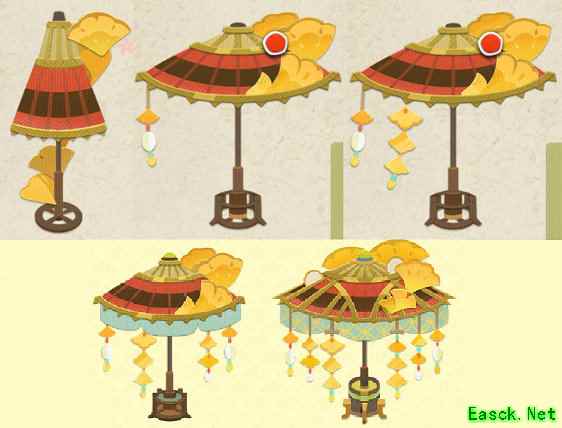1. 退休的祈福伞 2. 愿力值的获得:对自己或他人的「祈愿伞-秋」进行“祝福”可获得一定的随机愿力值、完成任务池的任务也可获得任务所示愿力值,手动注入愿力值即可解锁愿望对应的奖励。 3.成长值的获得:自己或者他人向自己的「祈愿伞-秋」祝福时,可提升自己「祈愿伞-秋」的成长值,每次固定获得30点,成长值增多后可以手动升级「祈愿伞-秋」,升级后可许的愿望随之增多,最多可以许愿5个,分别在伞达到2/3/4/5/6阶时解锁。随着伞阶数上升和愿望的完成,外观也会随之改变;部分外观变化展示见下:
