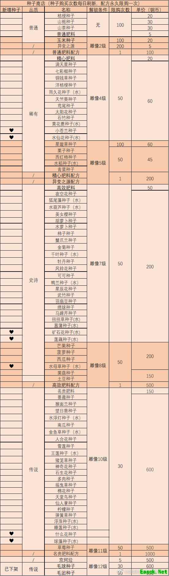 《阴阳师:妖怪屋》潆溟浅漫新增植物介绍「体服情报一览」 妖怪农场「潆溟浅漫」主题新增以下植物 稀有植物:小苍兰、水仙花(水) 史诗植物:矿石花(水)、莲藕(水)、水母草(水) 传说植物:什么花、球藻(水) P1:种子商店 P2:兑换商店