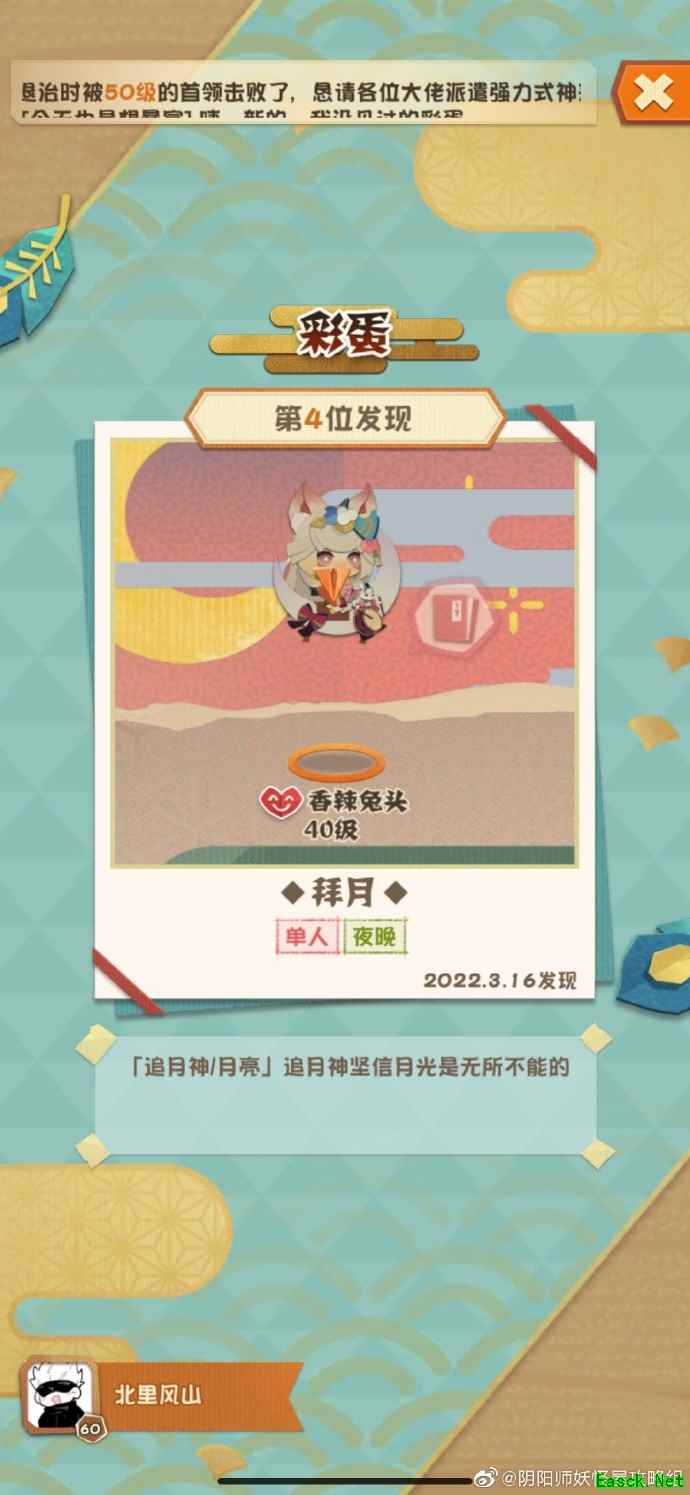 以上就是《阴阳师:妖怪屋》拜月彩蛋触发攻略,更多游戏攻略请持续关注手游网! 本文内容来源于互联网,如有侵权请联系删除。 |