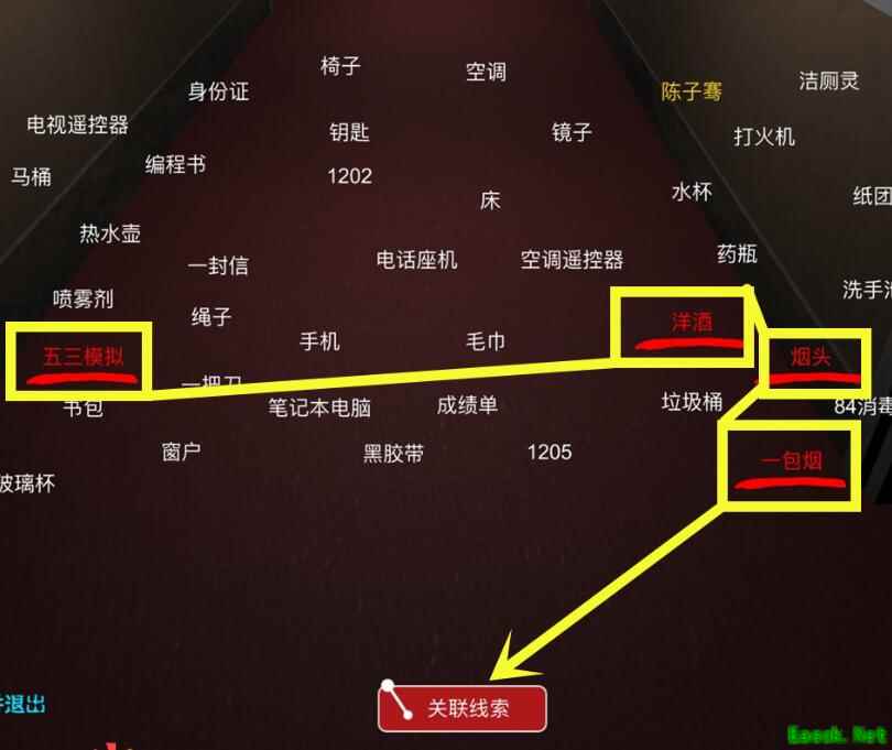 线索详情这似乎是一场报复行为,是死者对他父母的一种报复,用了最残忍的方式。在他们期待的未来即将实现前,毁掉了所有。 >>>>推荐阅读:《袁家宾馆》1202房间怎么进入 >>>>推荐阅读:《孙美琪疑案-袁家宾馆》笔记本电脑密码解析 以上就是小编整理带来的《孙美琪疑案-袁家宾馆》疯狂释放线索位置介绍,更多精彩内容,请点击关注易采游戏网,小编将持续为您更新! 本文内容来源于互联网,如有侵权请联系删除。 |