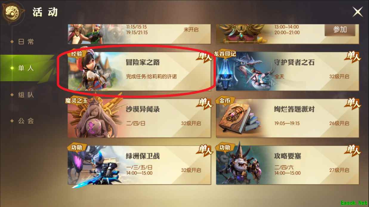 二、冒险家之路 我们在活动中选择“冒险家之路”,完成相应的任务就能获得大量的经验,但是每天只能完成3次哦。