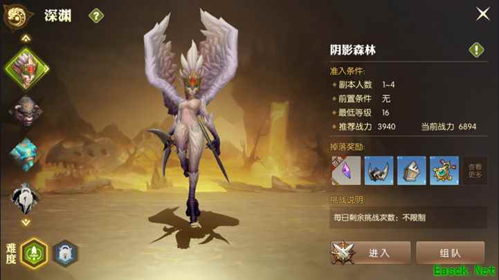 六、深渊 点击右上的“深渊”,选择适合自己的副本,不限次数,可以4名冒险家一起组队,通关副本后就能获得相应的奖励和经验值。