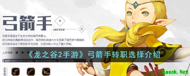 《龙之谷2手游》弓箭手转职选择介绍弓箭手职业转职选择推荐: 一、游侠 1、游侠是一个主攻pvp的职业,主要单挑强。 2、用来刷副本的话,伤害不是太高,伤害都是单体针对pk设计。