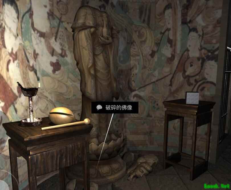 线索详情和一层的佛像一模一样,但是佛头被破坏了。