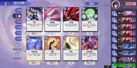 《黑潮之上》艾尔莎一刀流卡组推荐一、卡组搭配 角色基础卡组+战意延续*2+挑衅*2+界限突破*1+狂想*1+亢奋*2+复刻*1+致命劈砍*1。