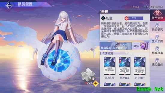 《黑潮之上》未来角色介绍属性: 能量系异能者 角色评测: 作为能量系角色,对武装系敌人有克制效果。核心玩法是通过卡牌获取觉醒点数,然后根据觉醒状态打出大量的伤害。