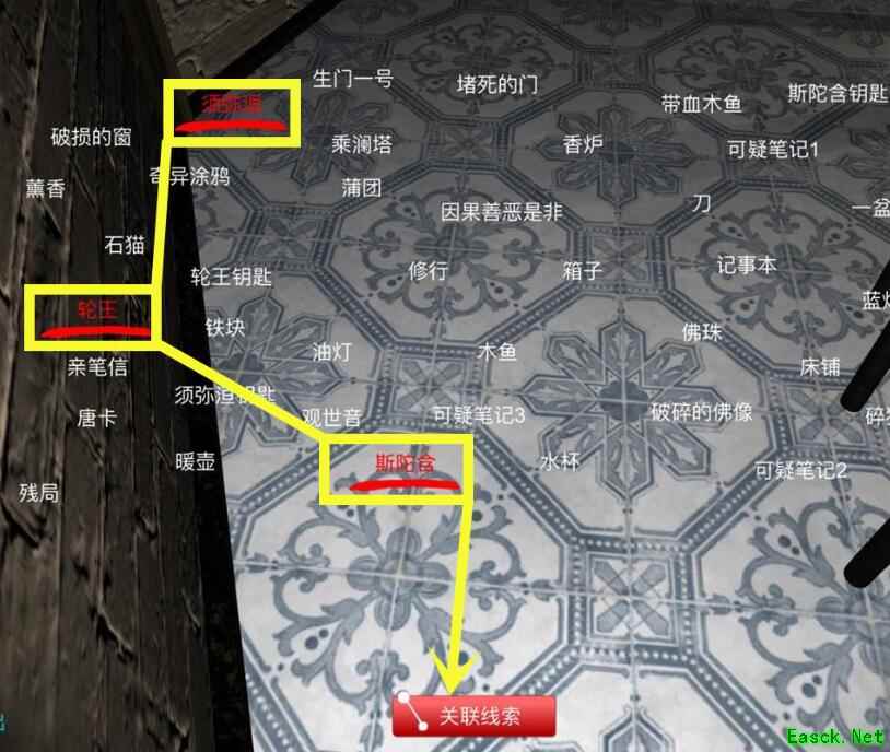 《孙美琪疑案-宋明朝》3级线索——猪圈密码猪圈密码:这是一个不能直接获得的线索,需要关联7个其他线索获得,分别是: 五级线索:【轮王】、【须弥洹】、【斯陀含】 四级线索:【罗汉】、【缘觉】、【阿那舍】 三级线索:【菩萨】