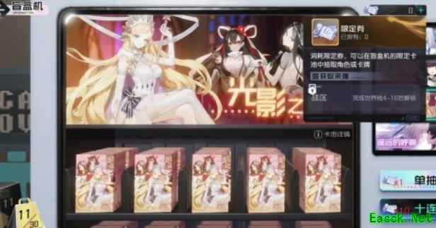 《黑潮之上》限定券获取攻略一、获得途径 战区 挑战战区中较高层数,才有机会获得限定券,获取难度极大。 氪金礼包 花费rmb,购买商城中的氪金礼包,可以获得限定券,这是最快最简单的方法,但是对平民玩家不友好。 活动 在部分活动中会赠送限定券,比如内测充值返利活动。 二、用处介绍 消耗限定券,可以在盲盒机的限定卡池中抽取角色或卡牌。