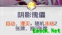 另外一种方式,部分角色专属技能卡中,也附带冻结效果。比如【佐伊】这名角色,技能卡【阴影傀儡】就能随机冻结两张牌,并且抽取三张牌,正是因为这个过牌机制,让其成为了冻结流必备角色之一。