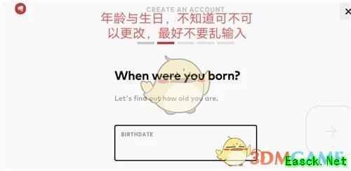 输入完成以后点右下角箭号进入下一步。 3、这一步主要是填写注册账号的出生日期,建议填一个自己可以记得住的,方便之后改密码或者找回账户,接着点右下角的红色"→",进入下一步。(最好选择2000年以前的,以免被当做未成年)