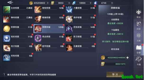《新神魔大陆》烈焰使者公会技能选择推荐公会技能: 按照【锋利】、【洞察】、【力量】、【利刃】、【生命】、【防御】和【元素祝福】顺序升级。可加强基础攻击力、暴击强度、重击强度、真实攻击、全属性强化等属性,进一步强化输出能力,也可适当升级【敏捷】、【敏锐】,增加容错率。