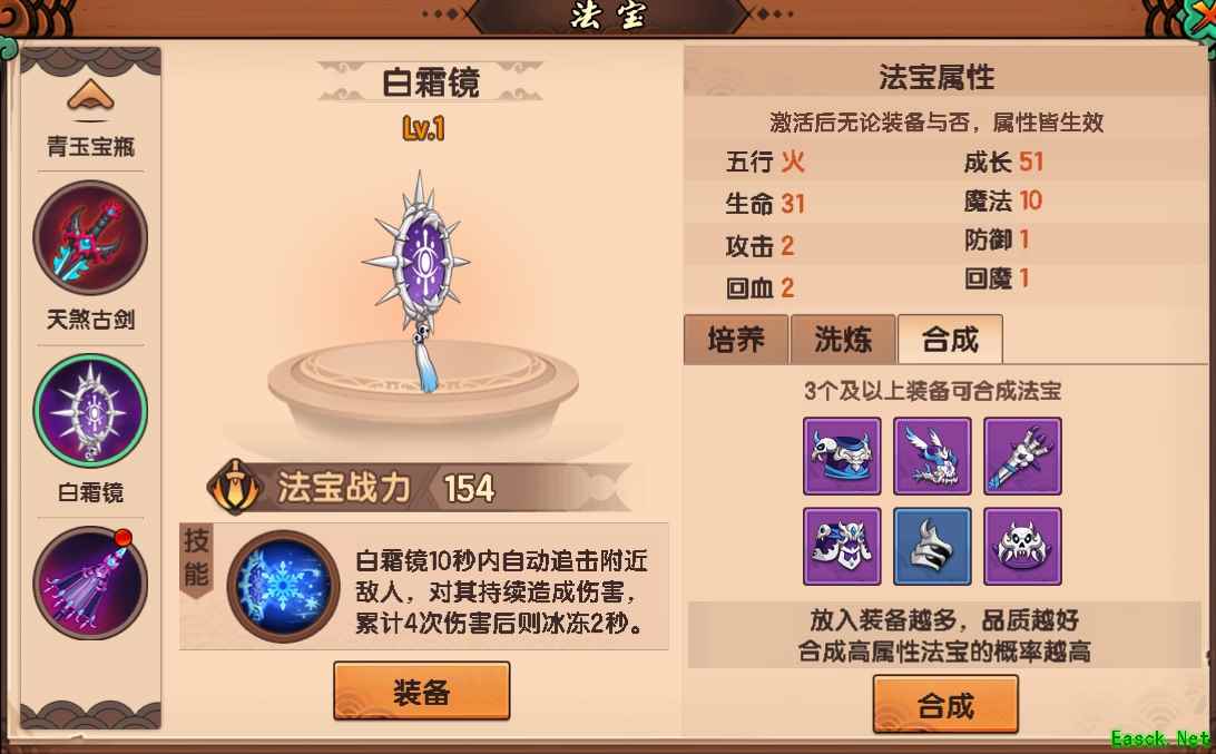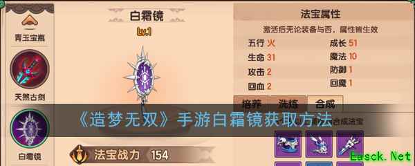 《造梦无双》手游白霜镜获取方法白霜镜 长年冒着冰寒之气,以至于镜面一直覆盖着一层薄薄的霜。 作用: 镜子依附近身之敌,对其造成持续伤害,累积造成4次伤害后冰冻2秒。 合成: 3个以上白霜套装合成获得