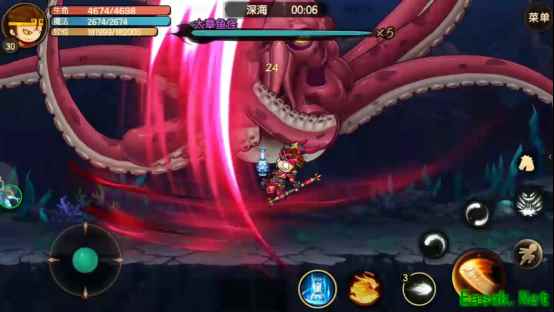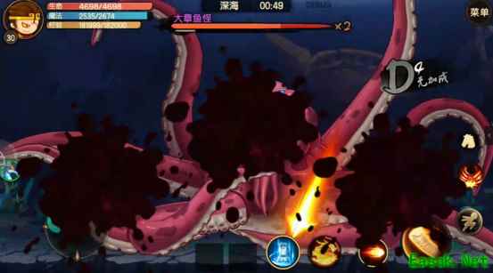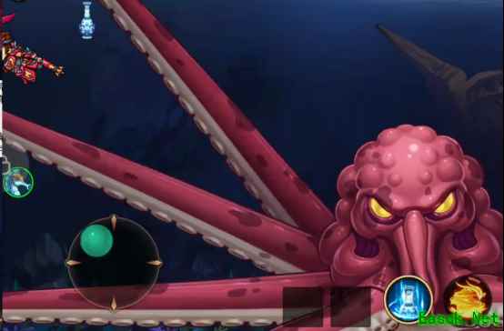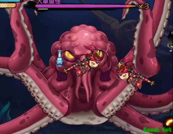 解法:BOSS会举起触手然后开始触手乱舞,攻击范围只限于屏幕有中下部分,上仙只需要朝屏幕上方移动就可以躲避 技能2 :触手拉扯 从大章鱼怪背后伸出三根触手瞄准敌人,瞄准后每隔一小段时间朝敌人伸出一根触手将命中的敌人拉到面前,触手非常长能够命中场中任何位置的敌人。