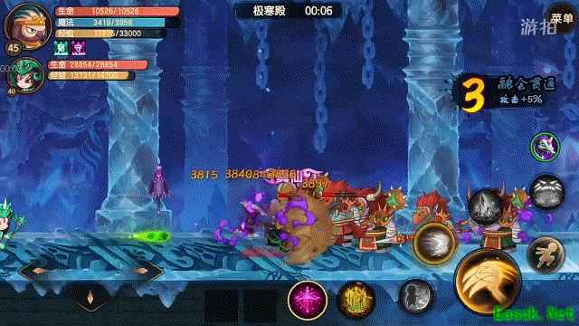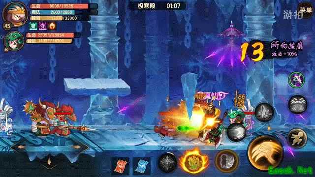 三技能 开天辟地.撼地 重击地面,召唤三道岩突击飞敌人 攻击次数多有击飞效果~控制力度高~PVP强伤害也爆炸具体效果图如下