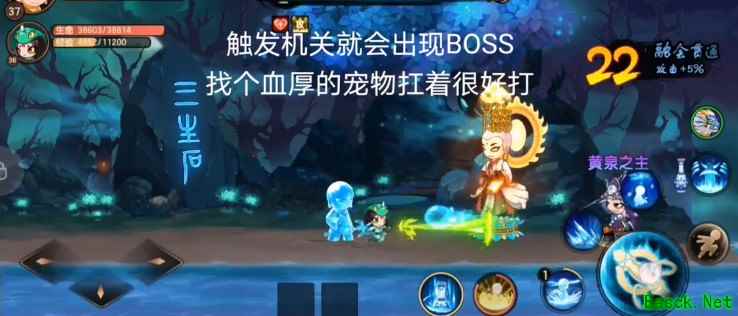 进入隐藏之后往上方走,把怪清完然后到水面之上,触发机关就会出现本关的boss了,如果你带着血厚扛得住的宠物的话这里很好打,学会了的话就赶快去游戏中挑战看看吧!