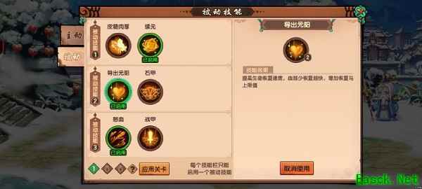 放弃反戈,带上磐石,可以挡掉来不急走位的技能。 二技能带上神甲,因为无双是八戒主要输出,所以选择神甲攒无双更快,且位移短,更加灵活,不推荐强袭。 土魔刺依个人喜好,哪个顺手用哪个。 无双觉醒重生,增强八戒回血能力,因为需要消耗,重生虽然没有多强,但很合适。 二、被动。